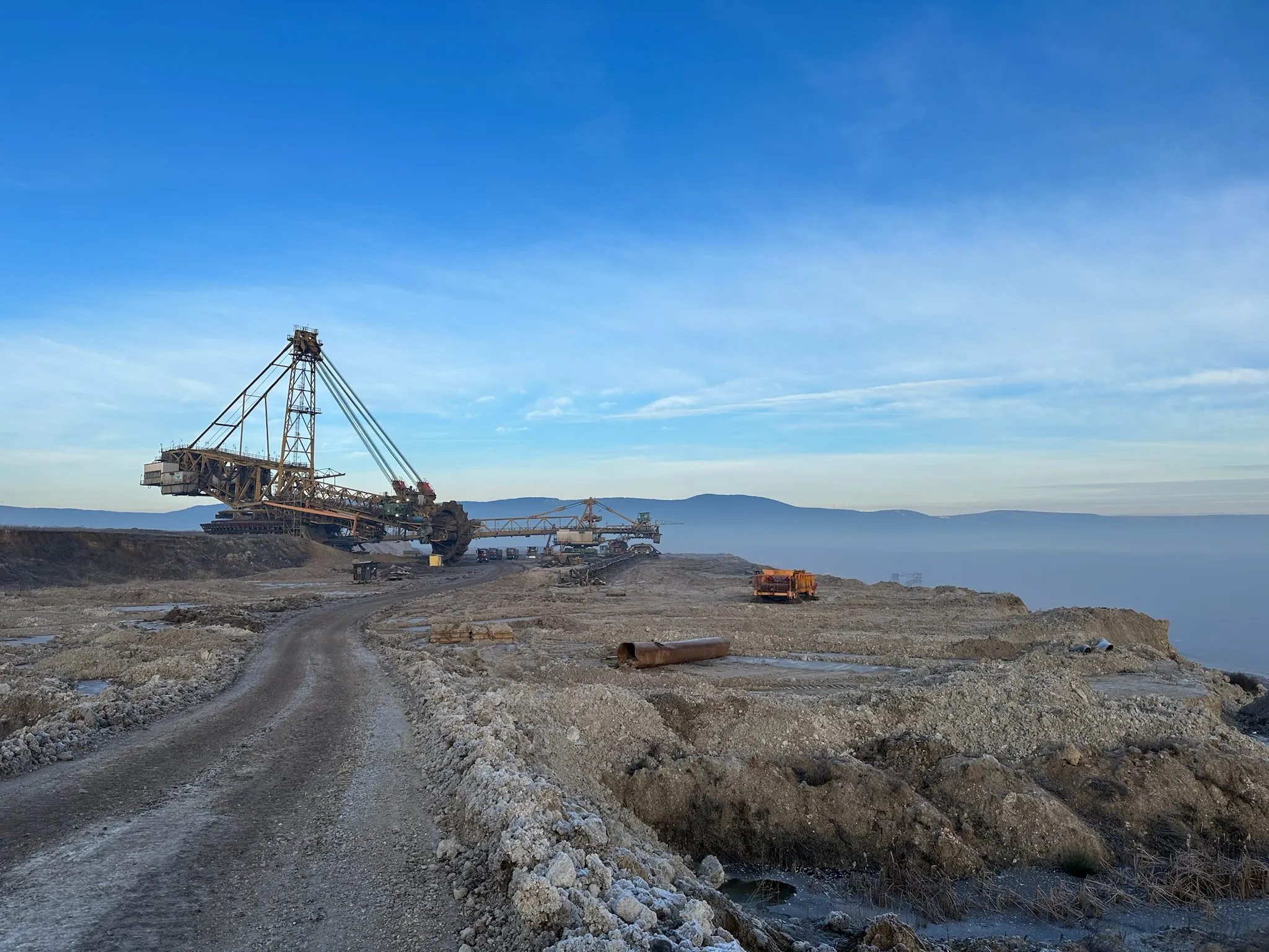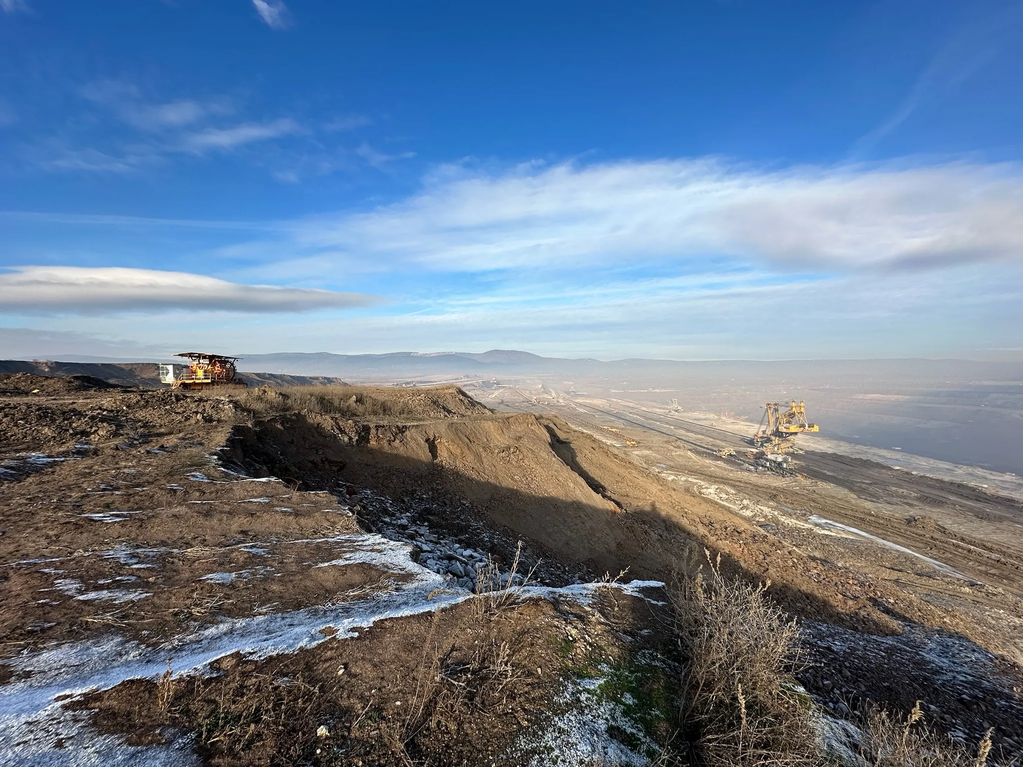 Letecká magnetometrie v obtížně přístupném terénu dolu Bílina. Na většině povrchu se nachází bahnitý terén, ten ale nepředstavuje problém pro techniku zkoumání z výšky.